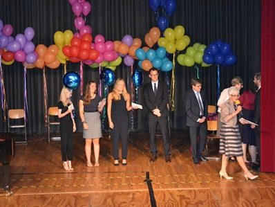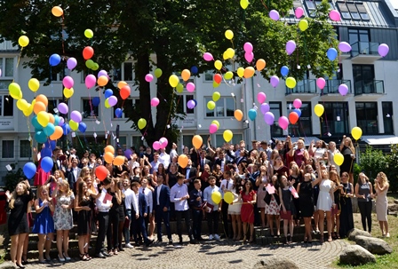 Die Botschaft dabei war eindeutig: Das Abitur ist die wichtigste Voraussetzung für spätere Lebenschancen, ganz gleich ob man es „gerade noch so“ geschafft hat, oder zu den Besten des Jahrgangs gehörte. Zum Beweis rezitierte Haase-Mühlbauer Heinz Erhardts humorig-tröstliches Gedicht „Schule“, in dem der vermeintlich Dumme zum Chef aufsteigt. Nach einem Vortrag von Jonas Gebert als Redner der Stufe wurden reichlich Glückwünsche geäußert. Die Abiturientinnen und Abiturienten selbst brachten ihre Träume und Hoffnungen auf Zetteln zum Ausdruck, die sie, an Luftballons befestigt, gen Himmel schickten. Ob die Pein damit für immer ein Ende hat? So ganz schmerzfrei, das werden sie feststellen, geht es ja erfahrungsgemäß im richtigen Leben nicht zu.