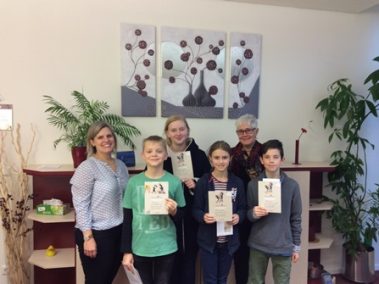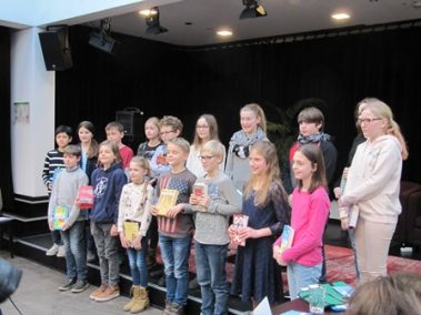 Laut Meinung der Jury konnte Henry Sorg den Buchstaben am besten Leben einhauchen, aber auch die anderen drei waren tolle Vorleser. Ein paar Tage später standen die vier Sieger stolz im Direktorinnenzimmer und konnten aus den Händen von der damaligen Schulleiterin Magret Sagorski je einen Büchergutschein und natürlich auch eine Urkunde in Empfang nehmen. Für Henry gab es auch noch ein Plakat und die Zusage, dass er die Schule auf der nächsten Ebene vertreten dürfe.