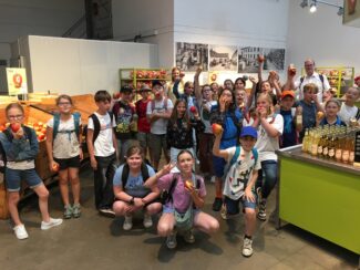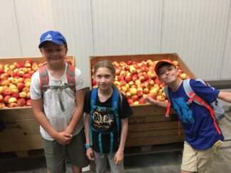 Hier wurde der Klasse der Schutz vor Hagel und Frost für Äpfel erklärt, aber auch wie viel Wildbienenarten es auf den Plantagen gibt und wie Schmitz-Hübsch diese schützt. Nach den Plantagen besuchte die Klasse die Lagerhallen. Ein Hit für alle war z.B. der Gang in den Kühlräume für die Äpfel. Es waren die einzigen Kühlräume mit Sauerstoff. Nach der Führung durch die Lagerhallen durfte sich jedes Kind noch einen Apfel und ein kleines Glas Apfelsaft schnappen und essen bzw. trinken.