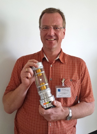 link zum Trailer von „Illuminati“, einem Thriller mit Tom Hanks, in dem man kurz den Behälter mit der Antimaterie sehen kann. Diese Original-Requisite hält Ulrich Kloppenburg auf dem Foto in Händen: Illuminati