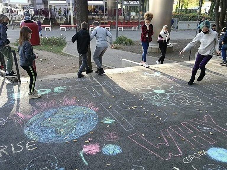 Am Freitag der 13.11.2020 waren alle Schüler in den Pausen dazu aufgerufen mit Kreide etwas auf den Boden zu zeichnen, um auf ihr Herzensthema aufmerksam zu machen. Am Ende war ein schönes „Gesamtkunstwerk“ mit Slogans, Icons und kleinen Bildern entstanden. Damit hat sich die AG auch an dem nationalen Wettbewerb dieses Tages beteiligt, bei dem möglichst viele solcher Kunstwerke an möglichst vielen Schulen in Deutschland entstehen sollten.