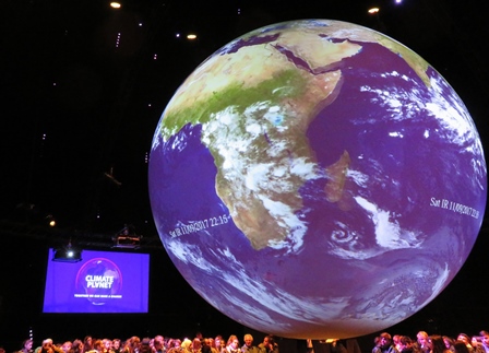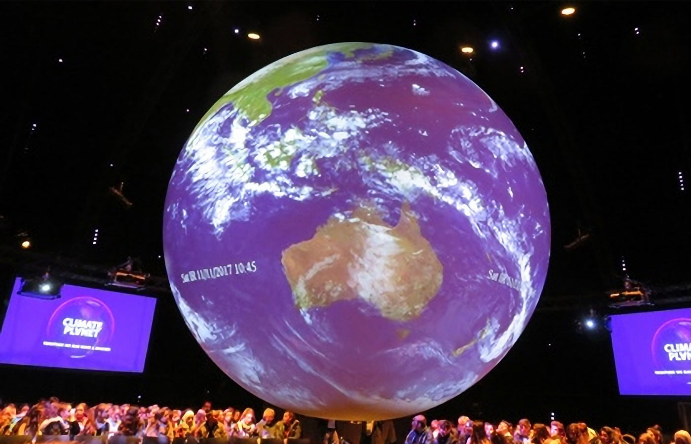 Den Klimawandel gibt’s gar nicht? Anhand des Climate Planets konnten die Schülerinnen und Schüler die Folgen der Erderwärmung sehr gut nachvollziehen. Die weltweit größte Nachbildung des Erdballs bot im Inneren einen einmaligen Eindruck: Auf einem 360°-Bildschirm in Form des Blauen Planeten machte ein 40minütiger Dokumentarfilm die klimatischen Entwicklungen deutlich.