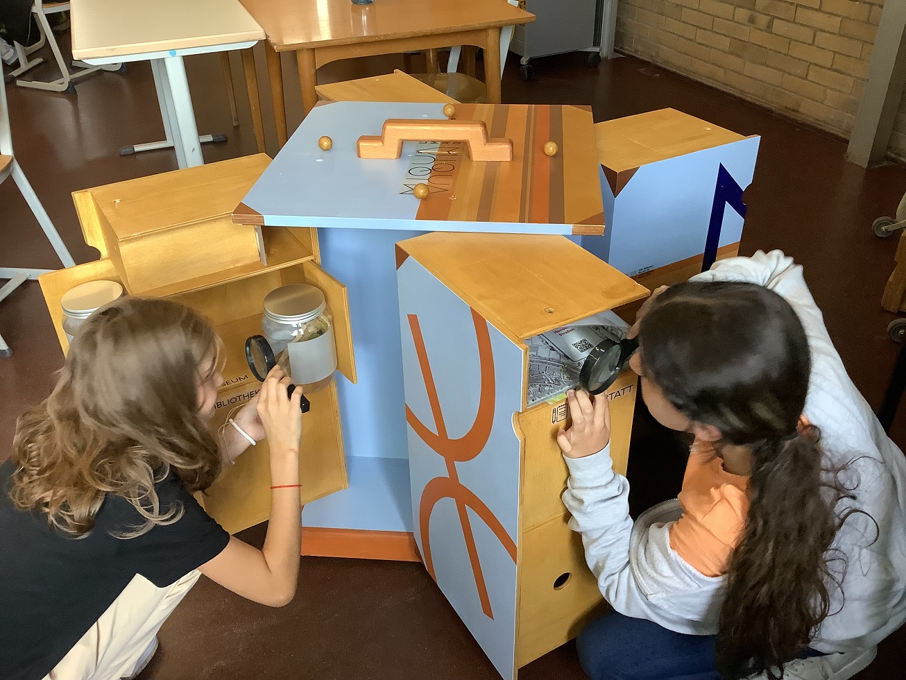 Leider ist das geplante jüdische Museum im archäologischen Quartier in Köln noch nicht fertig. Deshalb haben die Museumspädagogen kurzerhand einen originellen Schrankkoffer mit den besten Exponaten gefüllt und sind mit einer interaktiven Ausstellung zu uns in die Schule gekommen!