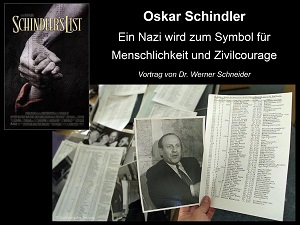 Herr Dr Schneider beendete seinen Vortrag mit der Aufforderung: „Dieser einzige Mensch, der die Welt verändern kann, muss kein Oskar Schindler sein, muss keine Greta Thunberg sein. Jeder von uns kann dieser einzige Mensch sein. Aber dieser einzige Mensch muss denken können und muss bereit sein, dies auch zu tun.“