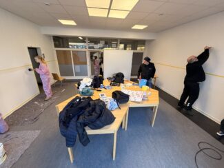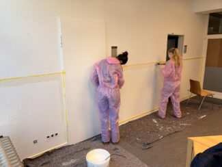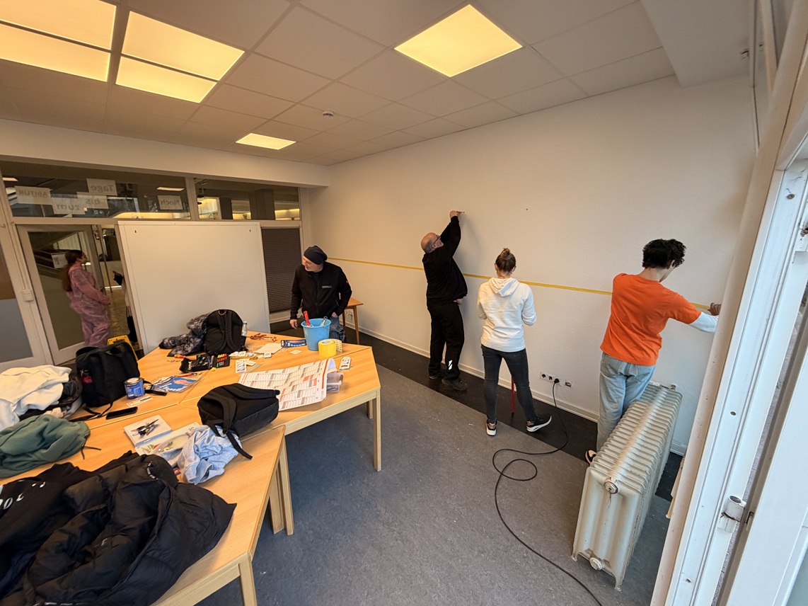 Für so viel Arbeit wurden jede Menge helfende Hände gebraucht: So waren Frederike Münz, Jonna Harms, Jana Goncharenko, Antonia Stock, Gabriel Szypryt Abilleira neben den Schülersprechern Julius Bennerscheidt, Carla Stern und Justus Keller unermüdlich im Einsatz. Letzterer betont aber nochmals: „Ohne die fantastische Unterstützung unseres Hausmeisters Herr Jubelius wäre der Raum heute aber sicher nur halb so schön!“