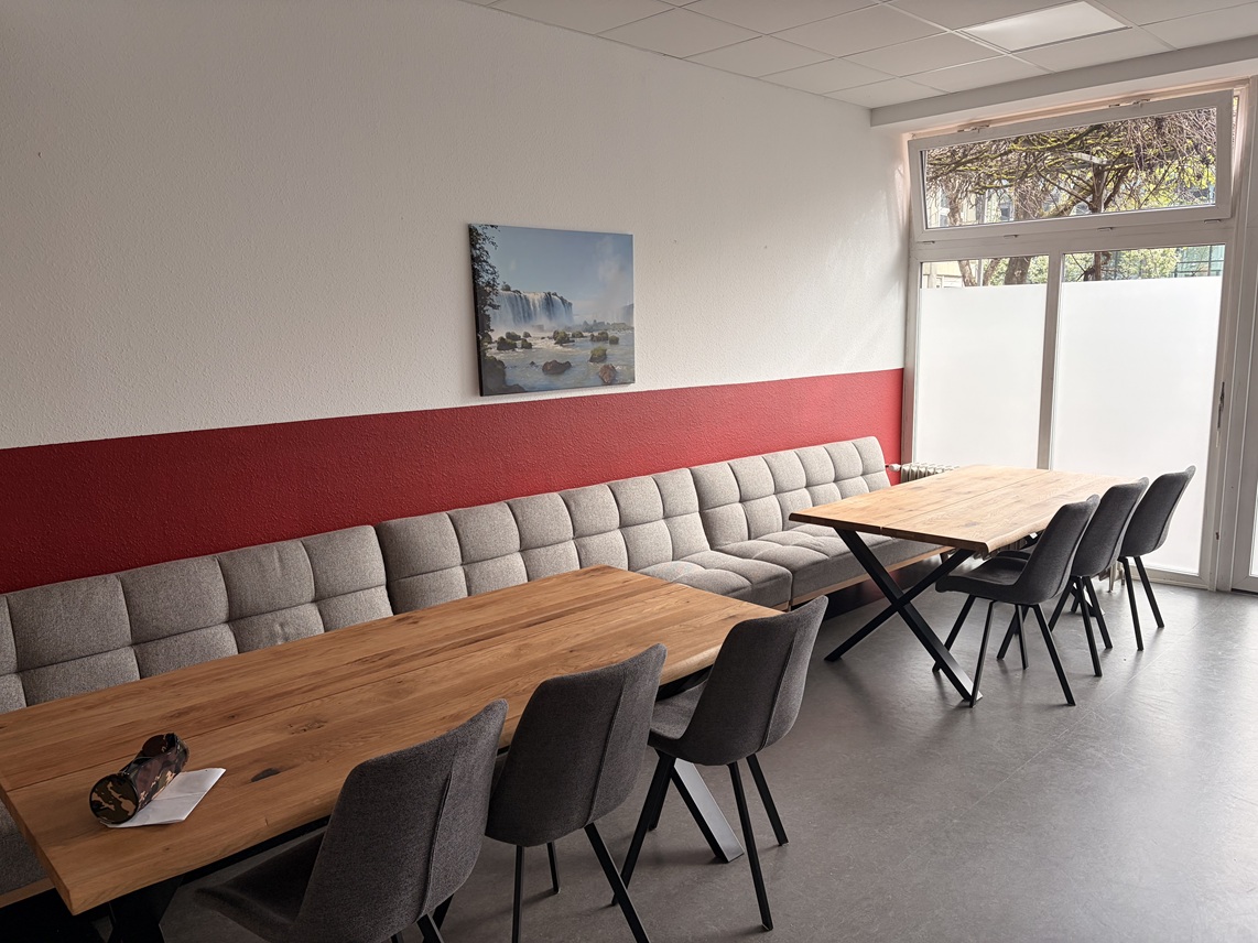 Dass dieser Raum heute so einladend wirkt, ist dem Zusammenspiel vieler engagierter Beteiligter zu verdanken. Der Förderverein der Schule ermöglichte mit seiner Unterstützung die Anschaffung der modernen Ausstattung: großzügige Tische zum Arbeiten, gemütliche Sofas zum Entspannen und stilvolle Stühle, die den Raum zu einem echten Wohlfühlort machen.
