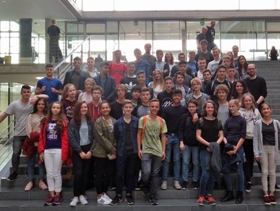 Nur wenige Meter vom Reichstagsgebäude entfernt steht das Paul-Löbe-Haus, benannt nach dem letzten demokratischen Reichstagspräsidenten der Weimarer Republik. Im typischen Stil der modernen Repräsentationsarchitektur mit großer Glasfront liegt es an den Ufern der Spree, mitten im Zentrum von Berlin. Hinter Sicherheitsschaltern, Personenkontrollen und Kameras wurden hier kurz vor den Herbstferien schwierige Gespräche geführt. Doch nicht von den Sondierungsgesprächen zur Regierungsbildung ist hier die Rede, sondern von politischen Erörterungen ganz anderer Art. Die Hauptperson: Elisabeth Winkelmeier-Becker, direkt gewählte Abgeordnete des Rhein-Sieg-Kreises IV. Das Ungewöhnliche: Die Fragesteller sind Schülerinnen und Schüler des Gymnasiums Siegburg Alleestraße. Im Rahmen der Fahrtenwoche haben der Q2-Mathematik Leistungskurs von Eva Schreich und die 9. Klasse von Klassenlehrer Markus Stöber die Einladung ihrer Abgeordneten „Lisa“ wahrgenommen.