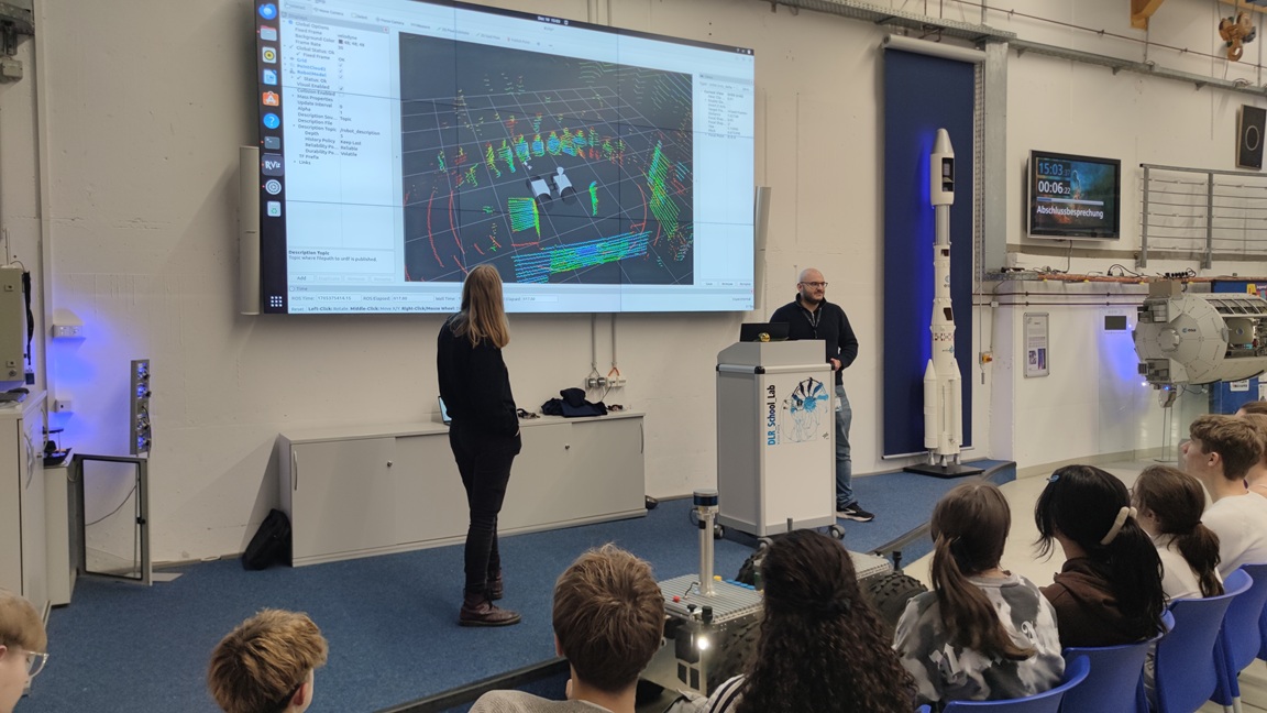 Nach einer gemeinsamen Mittagspause ging es in einen weiteren Workshop, bevor der Tag mit einer virtuellen Tour durch das Mondzentrum LUNA und einer Vorführung des Mars-Rovers endete.