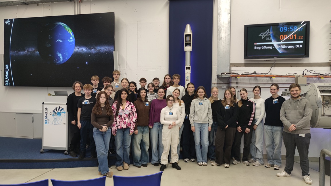 Am 10. Dezember 2025 unternahm die Klasse 9a des Gymnasiums Siegburg Alleestraße eine spannende Exkursion zum Deutschen Zentrum für Luft- und Raumfahrt (DLR). Die Schülerinnen und Schüler erlebten einen Tag voller faszinierender Einblicke in die Welt der Raumfahrt und Wissenschaft, der von großem Engagement und kreativen Ideen geprägt war.