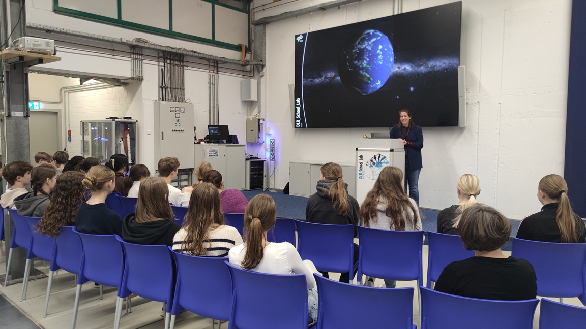 Der Tag begann mit einer gemeinsamen Einführung durch Ulrike Krings Rocha, Biologin und Lehrerin am DLR. Sie erläuterte die vielfältigen Aufgaben des DLR, darunter die Beobachtung des Klimawandels, Energie- und Materialforschung sowie die Ausbildung von Astronauten. Besonders spannend war die Diskussion über die Planung von Experimenten im Weltall, die physikalische Phänomene wie Schwerelosigkeit untersuchen.