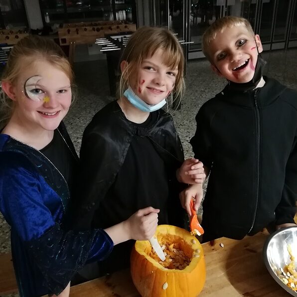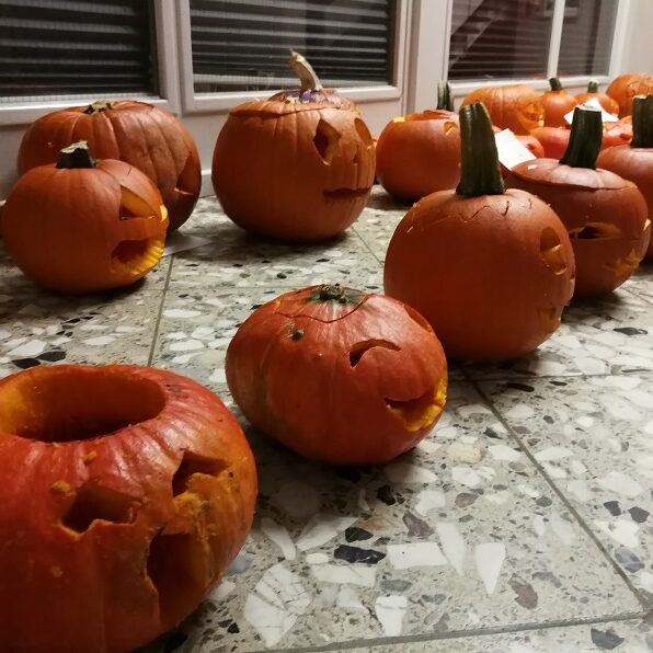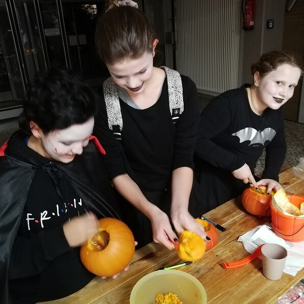 „Anstelle einer gewöhnlichen Feier, die aufgrund von Coronabestimmungen nicht so schön wäre, wie es sein könnte, wollten wir lieber eine neue Idee umsetzen, die kein schlechter Ersatz, sondern ein Highlight werden kann.“, erklärt stellvertretende Schülersprecherin Kaja Maul. Mit großem Ehrgeiz und viel Arbeit wurde daher das Konzept des Kürbisschnitzens auf die Beine gestellt.„Das ganze wurde sehr gut angenommen, die Kinder hatten richtig Spaß.“, erklärte auch Klassenlehrerin Anke Braun, die mit dem Großteil ihrer Klasse an dem Event teilnahm.
