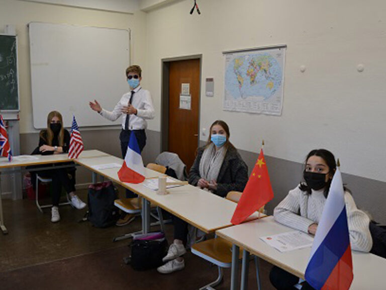 Neben den ständigen Mitgliedern des UN-Sicherheitsrates und den Konfliktparteien werden auch einige der Nicht-ständigen Mitglieder dargestellt. „Ich stelle in der Simulation die Rolle der Bundesrepublik Deutschland dar. Diese ist nicht nur derzeit ein nicht-ständiges Mitglied des Sicherheitsrates, sondern rotieren auch etwa alle acht Jahre immer wieder in diese Position.“, erklärt Kai Kochalski. Für die Beratung werden Anträge und Resolutionsentwürfe vorbereitet, sich genaustens mit dem Thema und den einzelnen Ländern beschäftigt. „Da es sich bei Wasser um eine so lebensnotwendige Ressource handelt, ist die Wahrung des Weltfriedens in solchen Konfliktfällen eine besonders heikle Aufgabe, die wenig Spielraum lässt.”, erklärt Schülerin Charlotte Selbach, die als Frankreich den Vorsitz innehat. Mit so viel diplomatischem Gespür sind die Schülerinnen und Schüler auf jeden Fall gut für die Zukunft gewappnet.