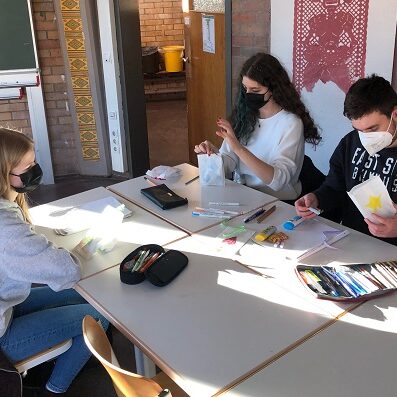 Sofort tragen die Leistungskursschülerinnen und -schüler Ideen zusammen, gestalten Geschenktüten, befüllen sie mit Süßem und fassen zusammen: „Es kommt uns sinnvoll vor, uns gemeinsam zu engagieren und zu wissen, dass die Hilfe sofort ankommt.“