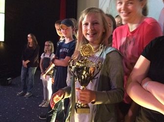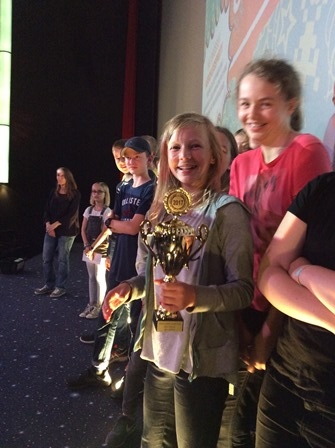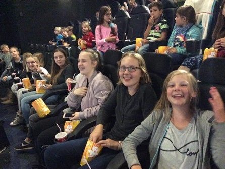 Nach dem Film nahmen die Bücherwürmer ihre Urkunden in Empfang, während die Crew des Cineplex den Popcorn-Neuschnee von Sitzen und Gängen entfernte. Dank gilt also nicht nur den Siegburger Bibliotheksmitarbeiterinnen, allen voran Stephanie Trommeschläger, sondern auch den vielen Helfern, darunter auch die „Abhörhilfen“. Da die 8A im nächsten Jahr nicht mehr teilnehmen kann, durfte die neue 5A von Klassenlehrerin Anke Braun sich den Pokal schon mal ansehen und anstatt Blut Druckerschwärze lecken. Mascha aus der 8A hat aber ein anderes SLC-Ziel: Sie will auch Abhörhilfe werden und den neuen Leseratten genau auf den Zahn fühlen. (September 2017 / Text und Fotos: Anke Braun)