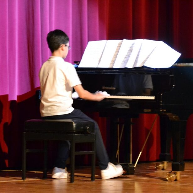 Von solchen lieferte die Band „Irapsac“ gleich zwei: „Narcotic“ von „Liquido“ und „Umbrella“ von Rihanna. Joelle Maier, welche große Bühnenerfahrung in der Schulband hat, sang unter der Begleitung von Musiklehrer Christoph Kranz am Piano das Lied „Hurt“ von Christina Arguilera. Klassisch wurde es dann bei Colin Schmidberger (6a), welcher eine formvollendete Darbietung von „The heart ask pleasure first“ am Flügel vorführte.